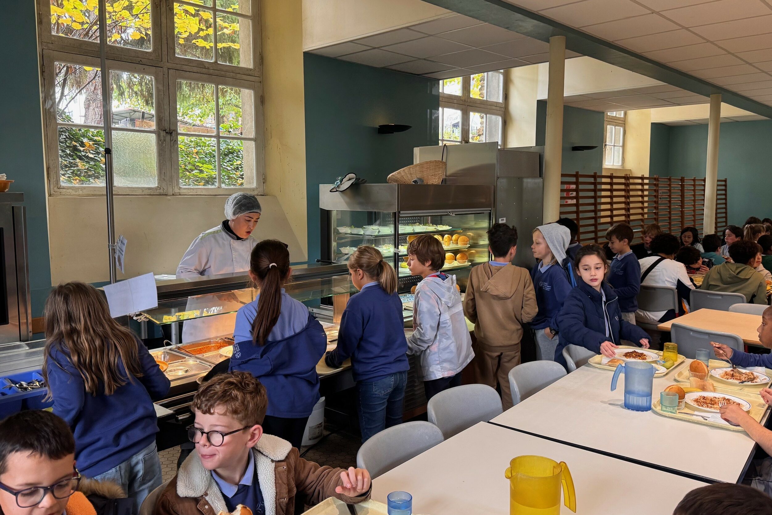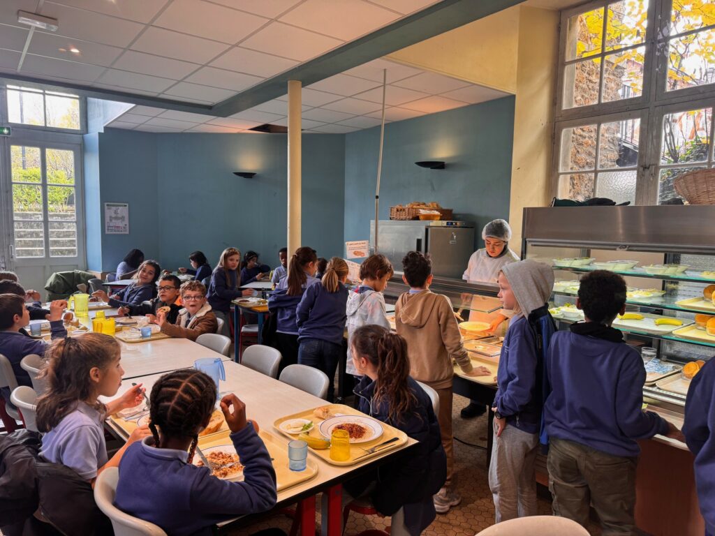 A partir du CE1, les élèves composent leur repas parmi trois entrées chaque jour, deux plats au choix avec un féculent et un légume par jour, un produit laitier (fromages variés, yaourt) et un dessert maison ou fruit. Les assistants d’éducation de service dans le réfectoire veillent à la sécurité et au bien être des élèves.